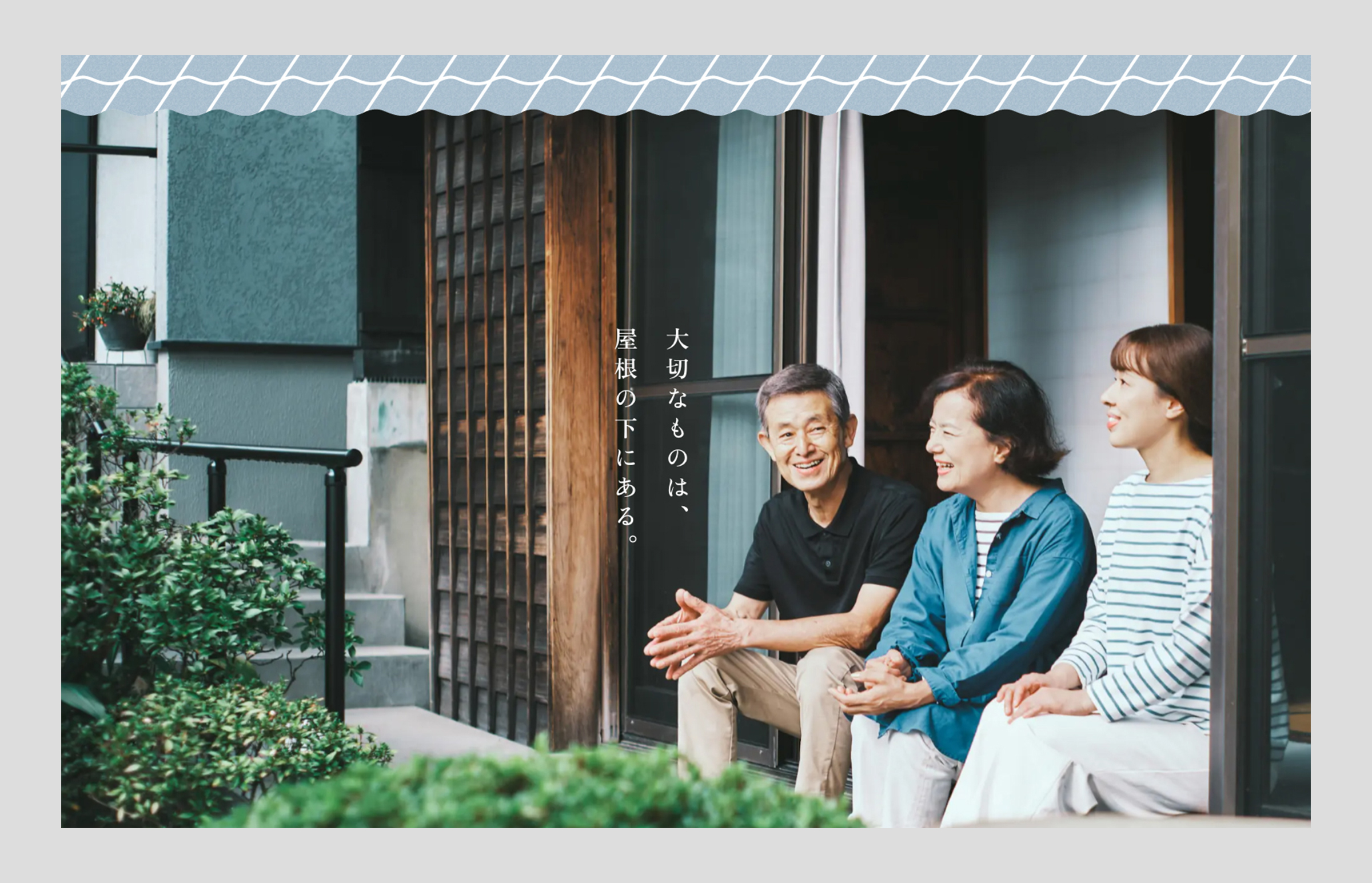 岐阜県土岐市で100年以上、瓦屋根の新築工事や修理を手掛けてきた足立瓦店。ていねいな手仕事と、お客様の利益をいちばんに考える誠実さを大切にする同社は、「地域の競合他社と価格勝負をするのではなく、仕事の質で、人情で、選ばれる存在でありたい」という想いをお持ちでした。その想いを「大切なものは、屋根の下にある。」という企業スローガンに込め、コーポレートサイトや販促チラシに展開していきました。チラシの制作においては、スローガンに込めた想いを体現するための“サービスのあり方”からご提案。「屋根の無料点検でドローンを飛ばすついでに、ご家族の記念撮影もプレゼントしてはどうか?」。事業の性質上、すぐに仕事につながることは少なくても、目の前のお客様、一度の出会いを大切にする。そんな足立瓦店のスタンスを表現しています。
